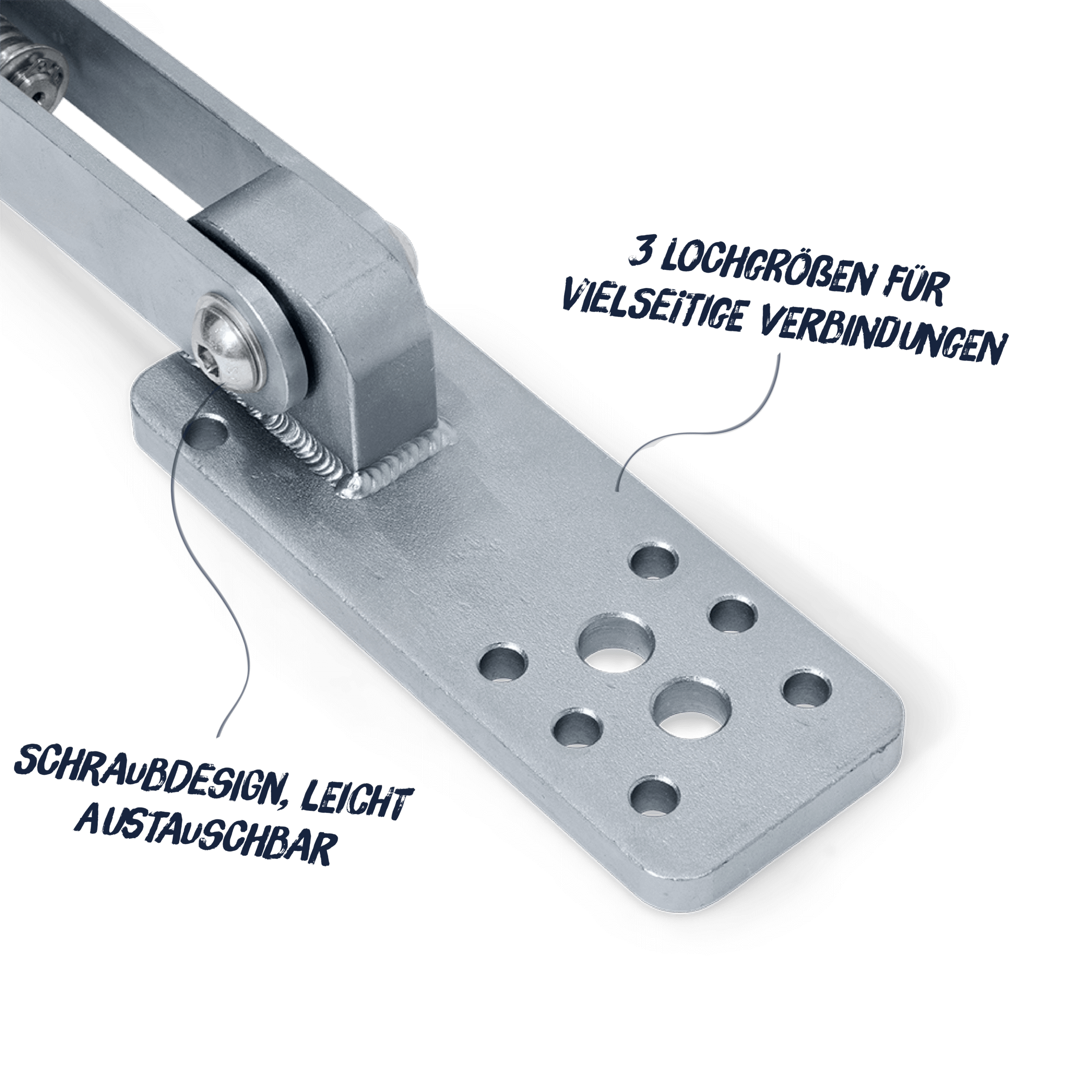 Bei Bedarf lassen sich Haken und Schraubplatten schnell und einfach austauschen.