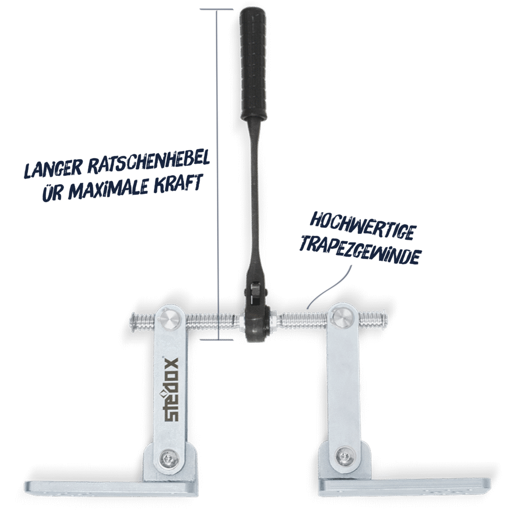 Das glatte Trapezgewinde und der ergonomische Ratschen­griff ermöglichen ein müheloses Spannen und Ausrichten bei minimalem Kraftaufwand, während der umkehrbare Mechanismus einen reibungslosen und effizienten Betrieb sicherstellt. Gefertigt aus hochwertig verzinkten Materialien und mit Präzision verarbeitet, bietet dieses Werkzeug außergewöhnliche Haltbarkeit und Zuverlässigkeit selbst unter harten Baustellenbedingungen – mit einem rutschfesten Griff, der Ermüdung auch bei längerem Einsatz reduziert.