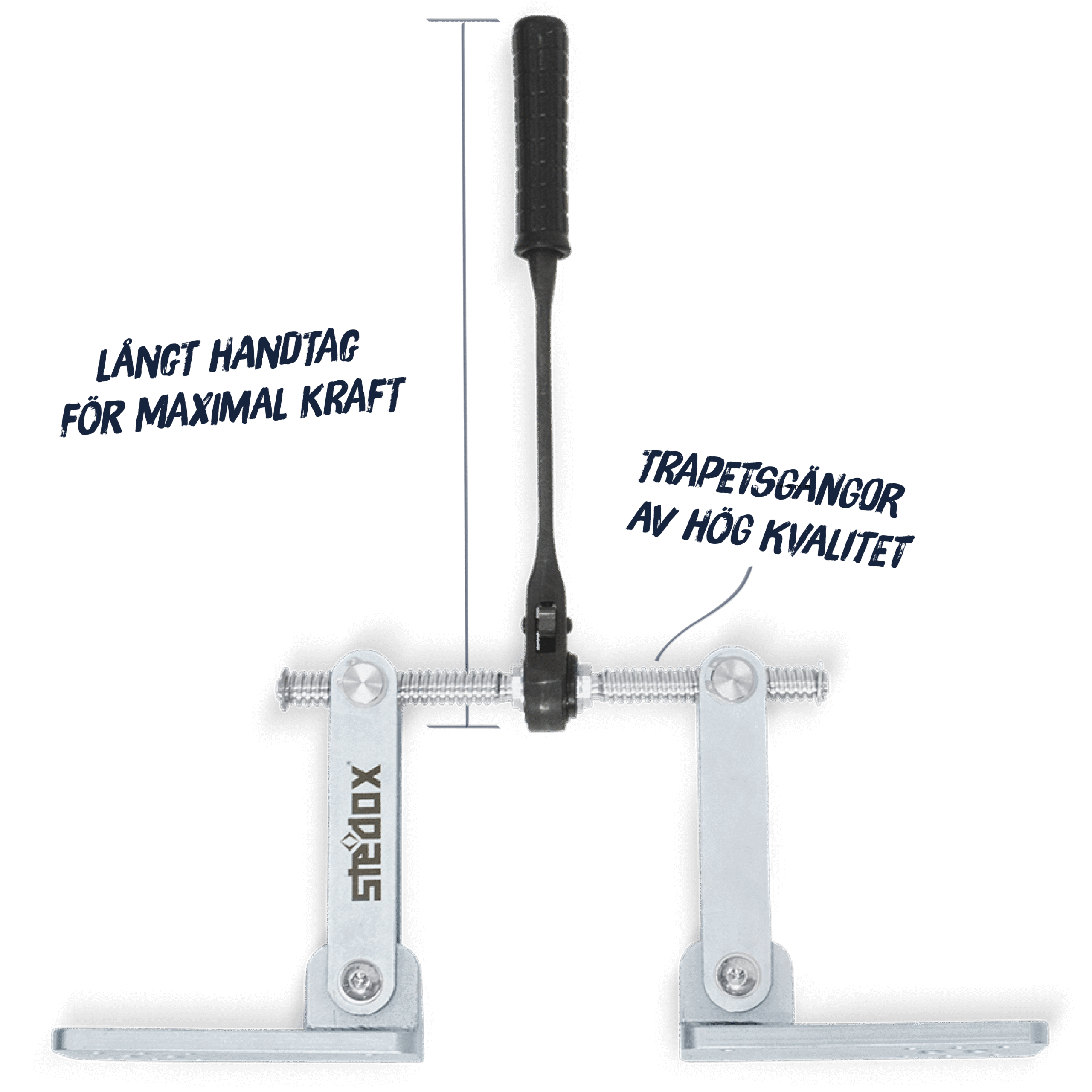 Den trapetsformade gängan och det ergonomiska spärrhandtaget gör fastspänningen snabb och enkel. Du får upp till 1500 kg dragkraft med en hand, utan att behöva använda onödig kraft.