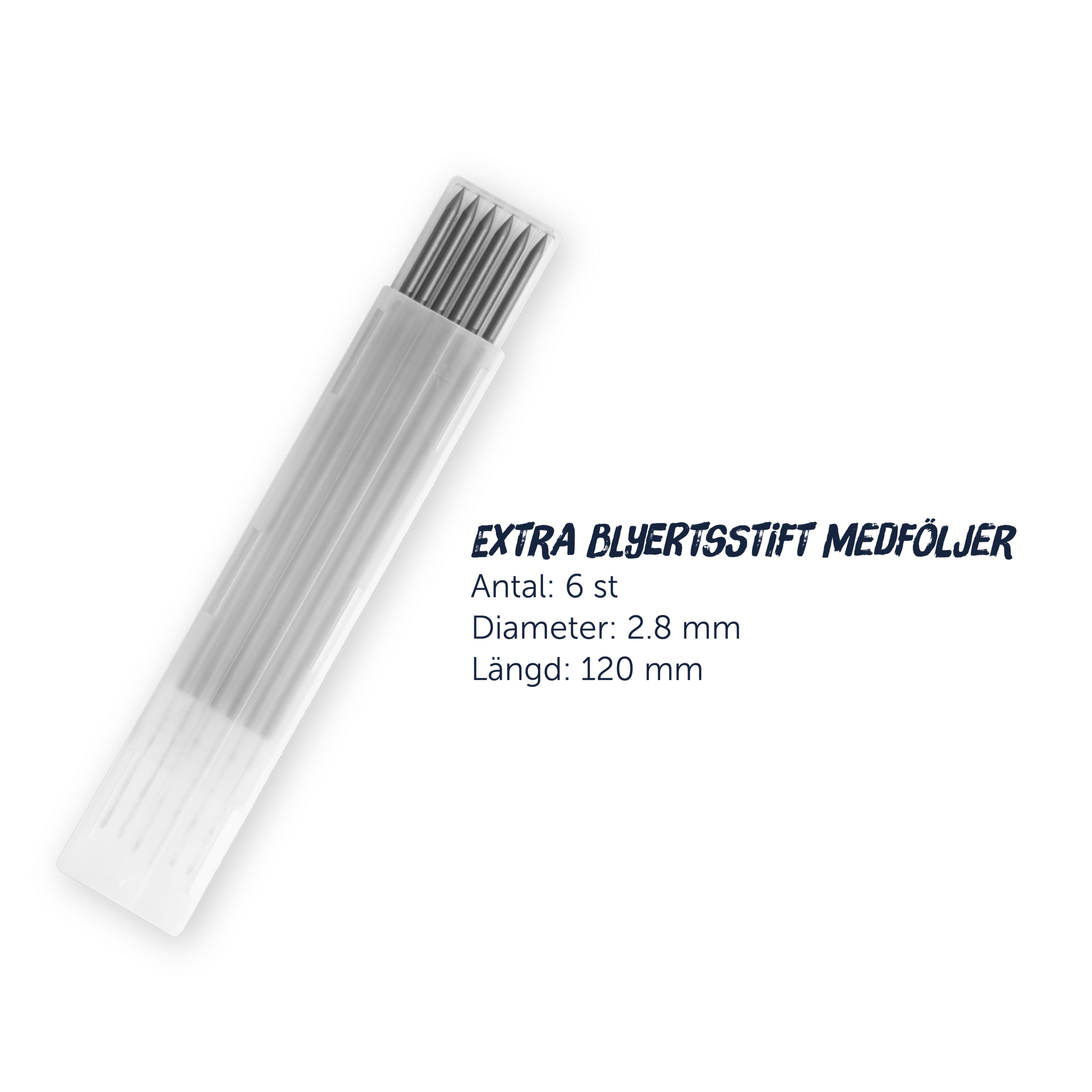 Innehåll: 1 penna, 1 hållare, 6 st extra blyertsstift