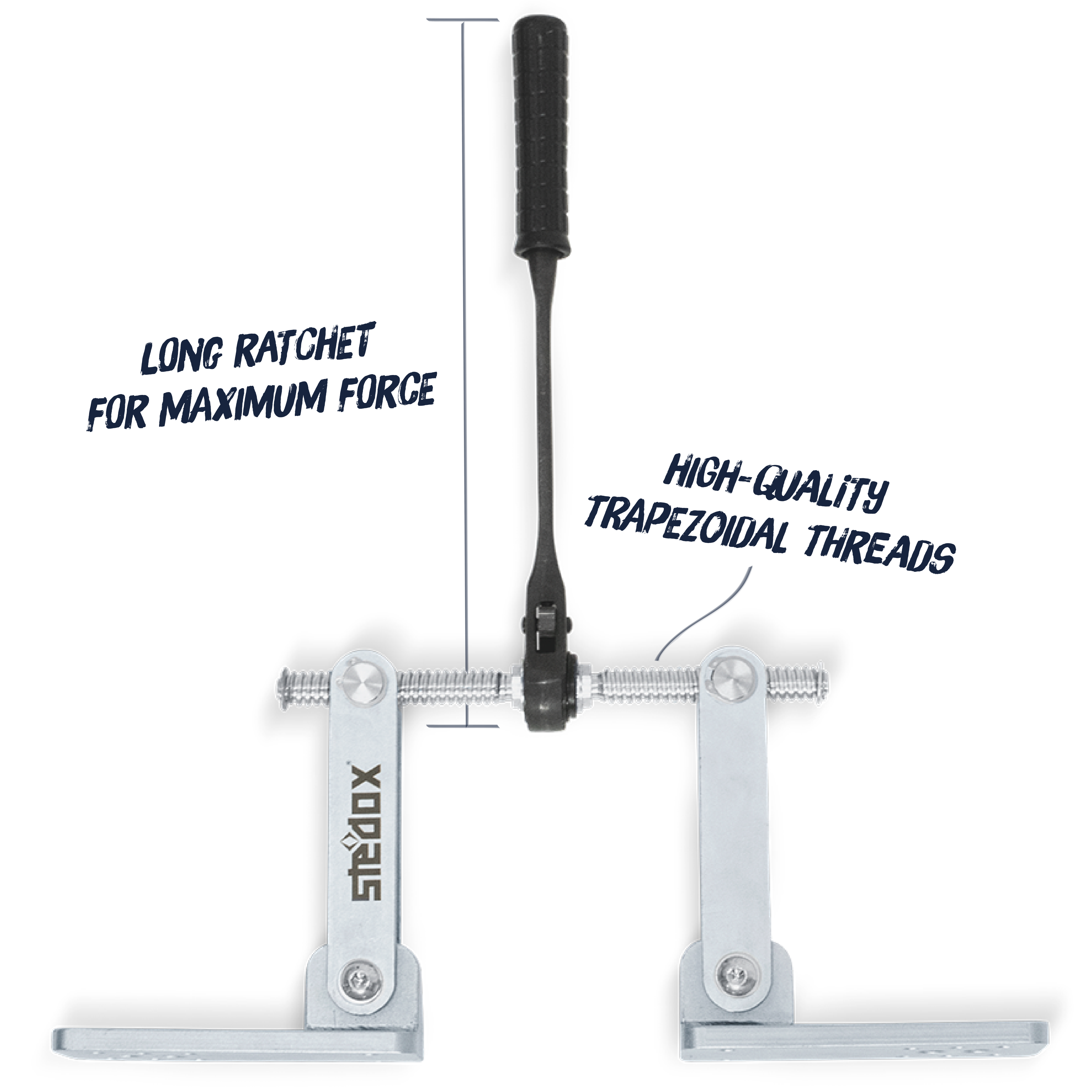 The Stedox® Beam Puller | Screw Down (known as ‘balkenzug’ in Germany) is specially designed for wood species prone to cracking or splitting. Each screw bracket features 13 holes for maximum attachment force to timber, making it ideal for aligning panels and beams in hard-to-reach places.